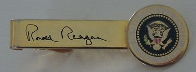 Title (ebay affiliate link): Vintage President Ronald Reagan Goldtoned Metal Tie Bar/Clasp