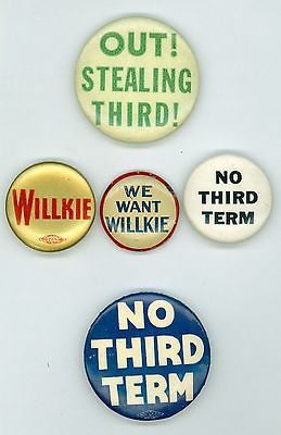 5 Vintage 1940 Wendell Willkie Political Campaign & Anti-FDR Pinback Buttons