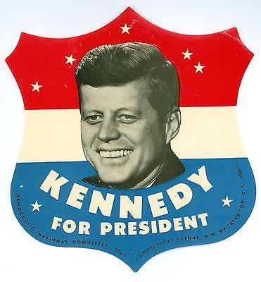 Title (ebay affiliate link): Vintage 1960 President John Kennedy Political Campaign Window Sticker Shield DNC