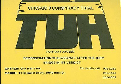 Title (ebay affiliate link): Vintage Anti-War Activists Chicago 8 Conspiracy Trial "The Day After" Sticker
