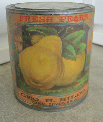 Title (ebay affiliate link): Antique Pear Tin Can with Paper Label Geo H. Hildt Canal Dover Ohio Advertising