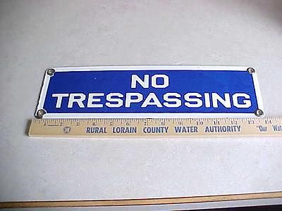 Title (ebay affiliate link): VINTAGE ORIGINAL BLUE AND WHITE PORCELAIN SIGN " NO TRESPASSING "