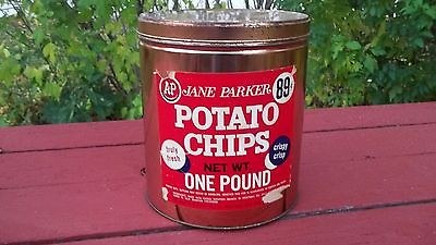Title (ebay affiliate link): Jane Parker A & P One Pound Potato Chip Tin Brass Color New York