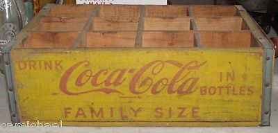 Title (ebay affiliate link): VINTAGE COCA COLA COKE CRATE YELLOW WOOD & METAL FAMILY SIZE 12 BOTTLE BOX