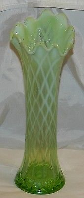 Title (ebay affiliate link): LAST CHANCE Jefferson Diamond & Oval Thumbprint Green Opalescent 12" Tall
