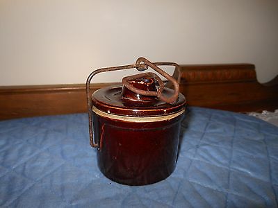Vintage Brown Stoneware Small Crock With Lid Wire Latch Bail Cheese? Unknown