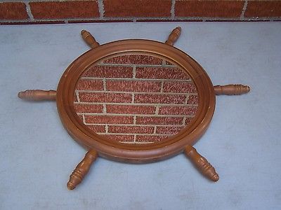 Title (ebay affiliate link): VTG MID CENTURY SHIPS CAPTAINS WHEEL ROUND PORT HOLE NAUTICAL WOOD WALL MIRROR