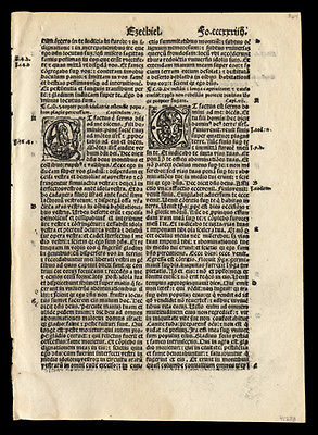 Title (ebay affiliate link): Antique Bible Leaf Old Testament The Prophet Ezekiel 3 Historiated Letters