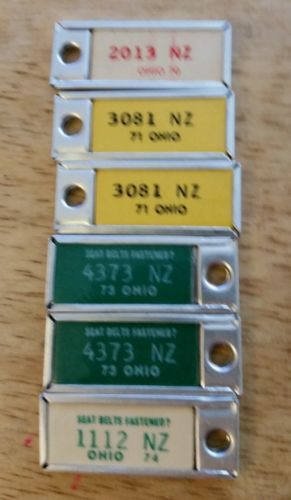 6 VINTAGE OHIO MINIATURE LICENSE PLATE KEY CHAIN TAG FOBS '70 '71 '73 '74