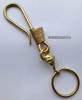 Title (ebay affiliate link): Collectable Vintage Solid Brass Skull Golden Key Chain Ring snap Belt hook clip