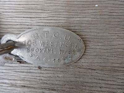 Key Chain with Vintage STCU Metal Return Tag Phone FA 6-1954 Spokane Teachers CU