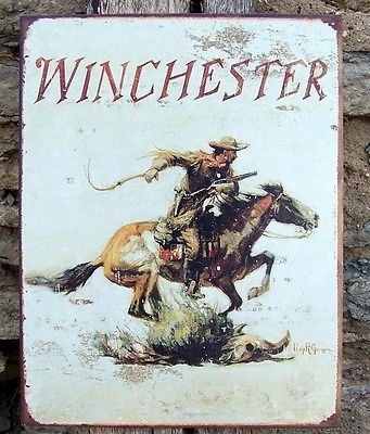 Title (ebay affiliate link): Antique Style Winchester Rifles Retro Metal Sign Cowboy Man Cave Wall Gift USA