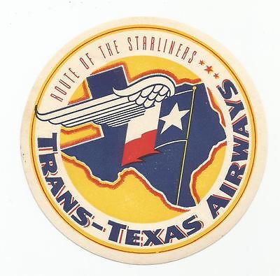TRANS-TEXAS AIRWAYS AIRLINES luggage label