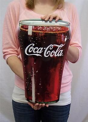 Coca Cola Tin Sign BIG Coke Glass 3D Embossed Wall Decor 14" FREE SHIP + NO RESV
