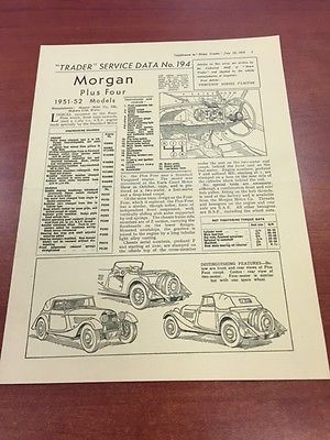 Title (ebay affiliate link): 1951-52 Morgan "Plus Four" Orignal Dealer "Trader" Service Data sheet no. 194