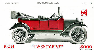 Title (ebay affiliate link): 1912 Original R-C-H Twenty Five 2-COLOR Tinted Full Page Car AD. Detroit, Mich