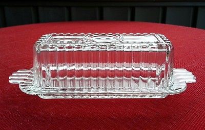 Title (ebay affiliate link): Vintage EAPG Glass Crystal Clear Butter Dish Ribbed. Depression