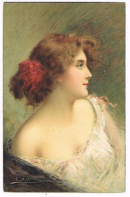 ANTIQUE "PRETTY LADY" (ANGELO ASTI) PRETTY YOUND LADY, RED HAIR, FLOWER IN HAIR