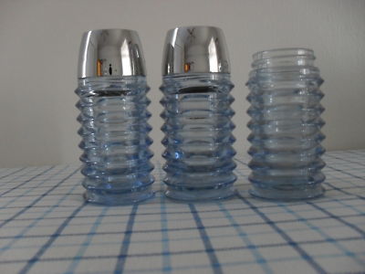 Title (ebay affiliate link): TWO MANHATTAN BLUE DEPRESSION GLASS SALT AND PEPPER SH
