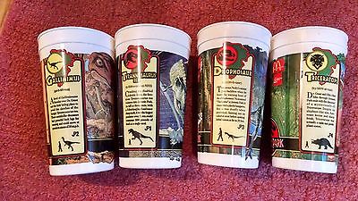 Mcdonalds 1992 Jurassic Park Cups Set of 4 Coke Coca-Cola Dinosaurs Promo