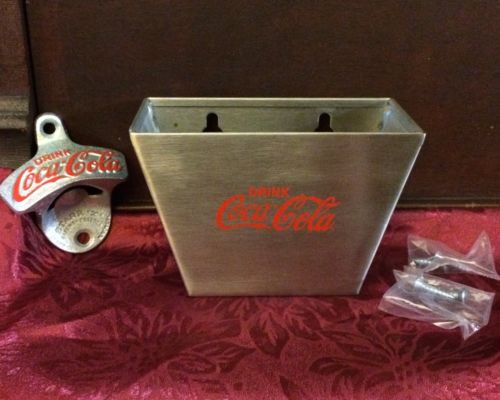 Coca Cola Wall Mount Bottle Opener With Bottle Cap Catcher *Brand New*