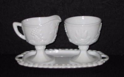 Title (ebay affiliate link): Indiana Colony HARVEST GRAPES White Milk Glass Sugar and Creamer Set with Tray