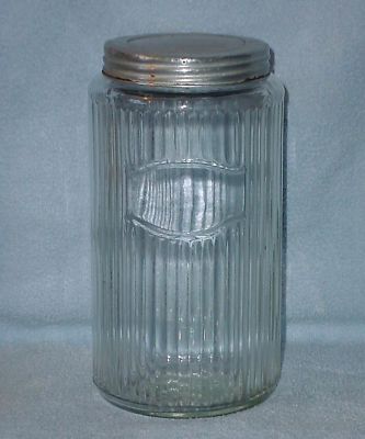 Title (ebay affiliate link): Depression Glass Hoosier Jar Canister Clear Ribbed