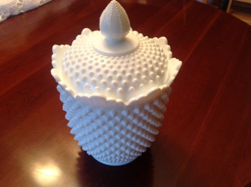 Title (ebay affiliate link): Vintage Fenton White Milk Glass Hobnail Cookie Jar With Lid