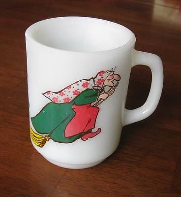 Vintage Anchor Hocking Norwegian Kitchen Witch Coffee Mug Milk Glass