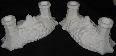 Pair of 2-Light Candleholders-MilkGlass-DoeSkin-GRAPE Pattern by IMPERIAL GLASS