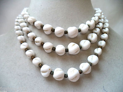 STUNNING VINTAGE ESTATE TRIPLE STRAND MILK GLASS BEADED NECKLACE!!! 630P