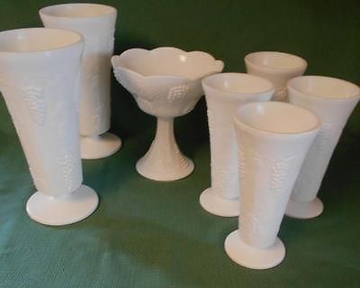 Title (ebay affiliate link): VINTAGE MILK GLASS LOT OF 7 LARGE VASES..HARVEST / GRAPE DESIGN..INDIANA GLASS