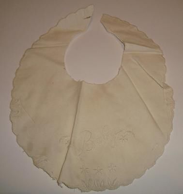 Title (ebay affiliate link): VINTAGE ANTIQUE OLD WHITE COMPOSITION BABY DOLL 1930S EMBROIDERED BIB