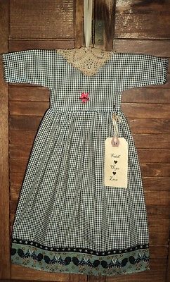 GRUNGY~PRIMITIVE WALL~CUPBOARD~DOLL DRESS AMERICANA ROOSTERS FOLK ART DECOR