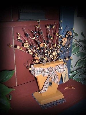 Title (ebay affiliate link): Primitive Wood Folkart Flower Pot Pip Berries Rusty Star~Button Homespun Bow
