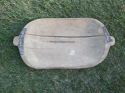 ANTIQUE PRIMITIVE CARVED WOODEN LARGE DOUGH BOWL (TRENCHER), 30.5" X 16"