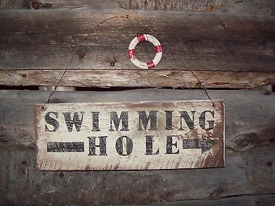 Title (ebay affiliate link): "SWIMMING HOLE WITH ARROW SIGN,RUSTIC SIGNS,PRIMITIVE DECOR,COUNTRY,PRIMITIVE