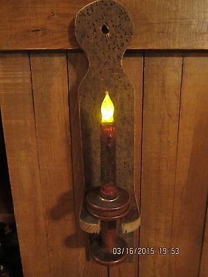 Title (ebay affiliate link): PRIMITIVE~ GRUNGY~HANDMADE OLD BARN WOOD VINTAGE BOBBIN CANDLE SCONCE HOLDER