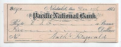 Antique 1883 Check for the Pacific National Bank of Nantucket, MA