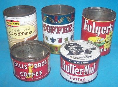 Antique Vintage Lot 5 Mixed COFFEE TINS