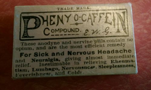 Title (ebay affiliate link): Vintage Quack Medicine Box, Pheny O. Caffeine Made in Worcester, Massachusetts