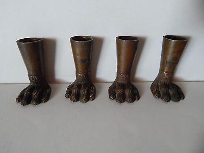 4 VINTAGE OLD BRASS CLAW FOOT FEET LEGS 4 TOE LION EAGLE BEAR ORNATE HARDWARE