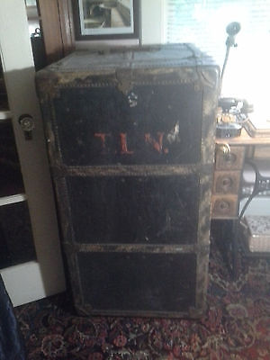 Antique Wardrobe Steamer Trunk / Vintage travel stickers/ Mendel Trunx - Lutz