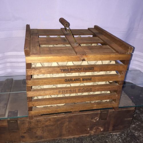 Title (ebay affiliate link): Vintage Primitive Wooden Egg Crate Caddy Twin Brook Farms Garland Maine W Lid