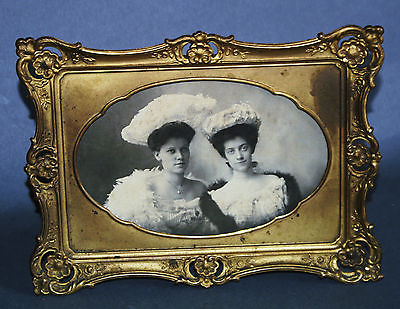 FINE VICTORIAN ORNATE BRASS FLORAL EASEL STYLE PICTURE FRAME + pic of 2 LADIES