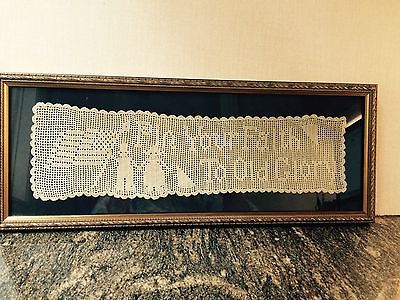 Patriotic/July 4th Framed Antique Crochet Banner--Wonderful!!