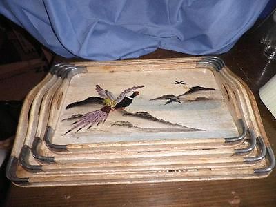 Title (ebay affiliate link): Vintage Wildlife Serving Trays Wood w Metal Corners Hand Painted made in Japan