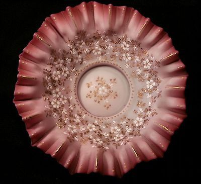 VICTORIAN BRIDES BASKET Cased Pink White Ruffled Edge Enameled Interior
