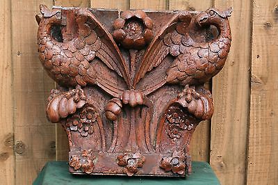 SUPERB 19thC GOTHIC WOODEN CARVING WITH WINGED GARGOYLES, FLOWERS & OTHER c1880s