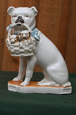 SUPERB 19thC PORCELAIN SEATED PUG DOG CARRYING BASKET WITH PUPPIES c1890s